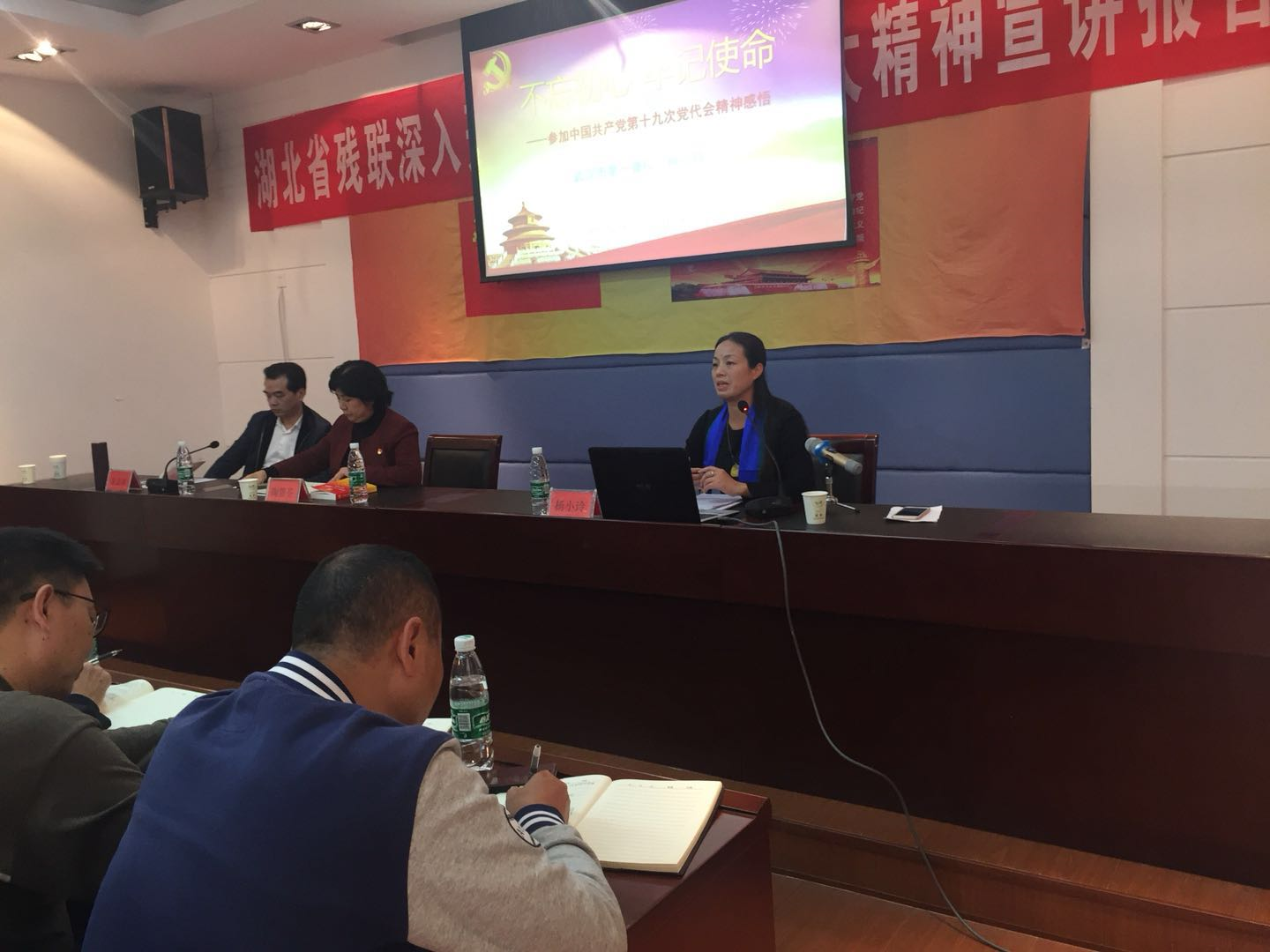 邀请十九大党代表、武汉市第一聋哑学校副校长杨小玲作十九大精神的宣讲。她在介绍了大会盛况后,结合自身实际工作,畅谈了学习十九大报告的心得体会。