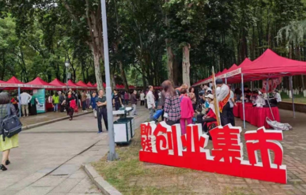 创业集市现场摊位共分为科创类、服务类、日用类、食品类、文创类和土特产6个大类,项目范围涵盖人工智能、优选平台、航空摄影、科学育婴、心理咨询、创业指导、国画油画、汉绣串珠、手绘剪纸、特色板鸭、红茶蜂蜜等。