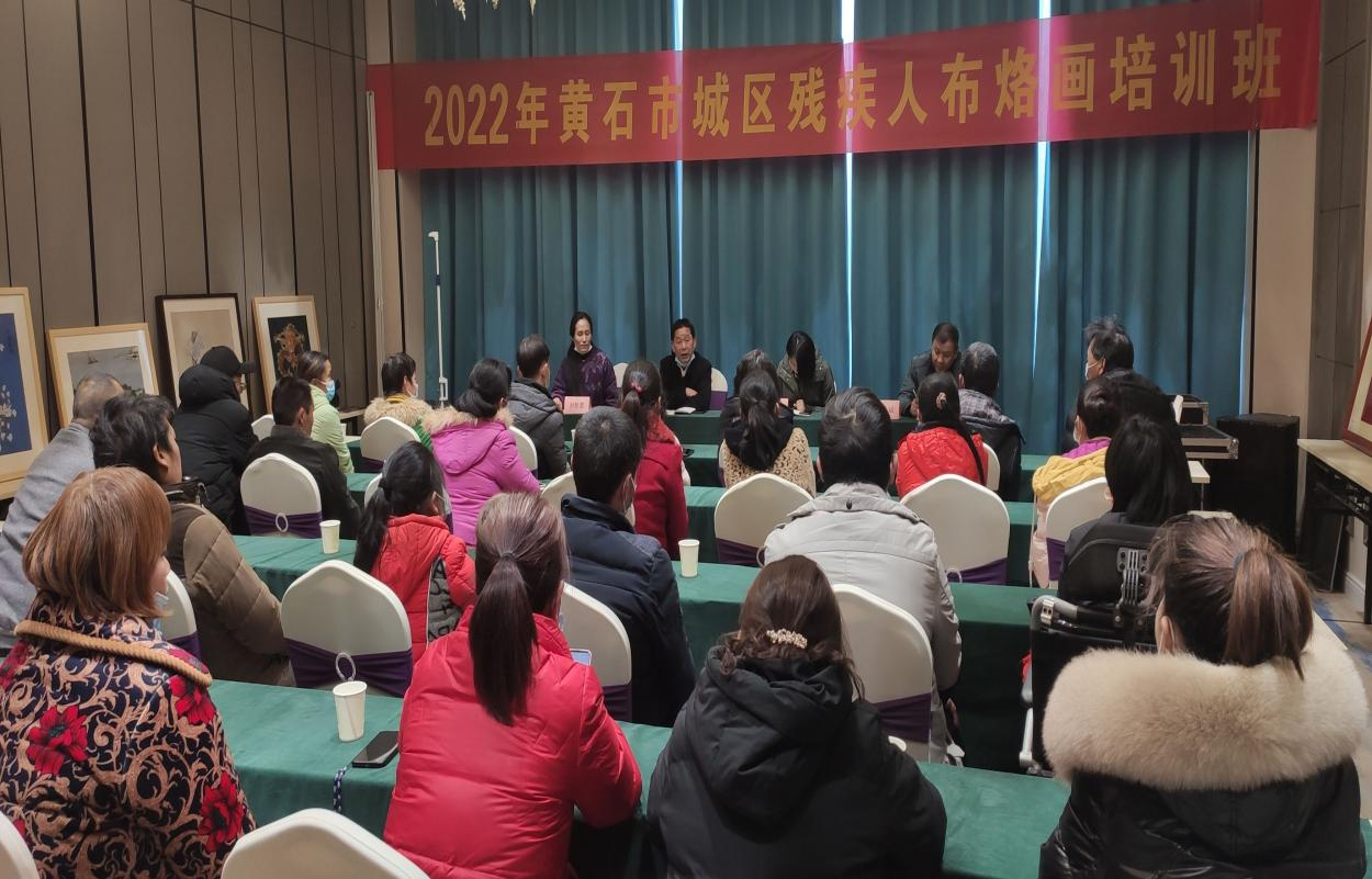 新年伊始,万象更新。为持续推进党史学习教育“我为群众办实事”实践活动落实落细,1月10日,由黄石市残联举办、开发区·铁山区残联承办的黄石市2022年城区残疾人布烙画培训班在开发区·铁山区金山街道百花商业街维也纳酒店开班,25名残疾人参加此次培训。市残联三级调研员余洪明出席开班仪式并讲话,市残联就业中心副主任陈国斌、开发区·铁山区残联理事长陈晖出席开班仪式。