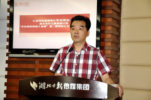 省残联副理事长朱志斌高度重视助残社会组织培育和发展,对长江邻居项目组织实施工作给予大力的支持。今天专门出席新闻发布会,并宣布“湖北省长江新里程计划‘关心你的残疾人邻居’第二期项目公众投票正式开始!”